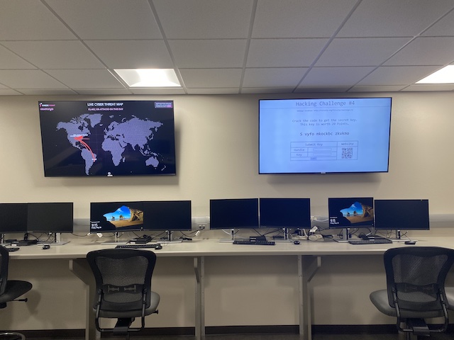 Each year "The DMZ" puts on a Capture the Flag style event. Students pre-qualify and get placed on teams. Two teams will be given identical servers and need to find and exploit vulnerabilities on the opposing team's machine to gain points. If they can shut down the vulnerability and prevent the exploitation, they block the other team from gaining points.